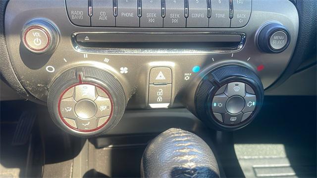 2012 Chevrolet Camaro 1LT SERVICE RECORD AVAILABLE GOOD TIRES REAR BACK UP CAMERA GOOD BRAKES RECENT TRADE IN Camaro 1LT 2D Coupe 3.6L V6 DGI DOHC VVT 6-Speed Automatic with TapShift RWD Inferno Orange Metallic Black w/Sport Cloth Seat Trim 2 Front Cup Holders 20"" x 8"" Front & 20"" x 9"" Rear Aluminum Wheels 3-Spoke Leather-Wrapped Steering Wheel 4-Wheel Antilock 4-Wheel Disc Brakes 6-Speaker Audio System Analog Instrumentation Auto-Dimming Inside Rear-View Mirror Bluetooth For Phone Body-Color Roof Ditch Molding Carpeted Front Floor Mats Convenience & Connectivity Package Delay-off headlights Electric Rear-Window Defogger Electronic Cruise Control Front Bucket Seats Front Center Armrest Front fog lights Front Sport Bucket Seats Fully automatic headlights High-Intensity Discharge Headlamps LATCH System Leather-Wrapped Shift Knob Maintenance-Free Battery Manual Rake & Telescopic Steering Column OnStar 6 Months Directions & Connections Plan Panic alarm Power driver seat Power passenger seat Power Programmable Door Locks Power steering Power Sunroof w/Express-Open & Venting Power windows Preferred Equipment Group 1LT Rear Vision Camera Rear Vision Package Remote Keyless Entry Remote keyless entry RS Package Security system SIRIUSXM Satellite Radio Speed control Speed-sensing steering Sport Cloth Seat Trim StabiliTrak Stainless-Steel Dual-Outlet Exhaust Steering Wheel Mounted Audio Controls Steering wheel mounted audio controls Traction control Ultrasonic Rear Park Assist USB Port Audio System Feature Wireless PDIM 18"" Painted Aluminum Wheels 4-Wheel Disc Brakes 6 Speakers ABS brakes Air Conditioning Alloy wheels AM/FM radio: SiriusXM Brake assist Bumpers: body-color CD player Compass Driver door bin Driver vanity mirror Dual front impact airbags Dual front side impact airbags Electronic Stability Control Emergency communication system: OnStar Directions & Connections Four wheel independent suspension Front anti-roll bar Front reading lights Illuminated entry Low tire pressure warning Occupant sensing airbag Outside temperature display Overhead airbag Passenger door bin Passenger vanity mirror Power door mirrors Radio data system Radio: AM/FM Stereo w/CD-ROM/MP3 Playback Rear anti-roll bar Rear window defroster Spoiler Tachometer Telescoping steering wheel Tilt steering wheel Trip computer Variably intermittent wipers Camaro 1LT 2D Coupe 3.6L V6 DGI DOHC VVT 6-Speed Automatic with TapShift RWD Inferno Orange Metallic Black w/Sport Cloth Seat Trim 2 Front Cup Holders 20"" x 8"" Front & 20"" x 9"" Rear Aluminum Wheels 3-Spoke Leather-Wrapped Steering Wheel 4-Wheel Antilock 4-Wheel Disc Brakes 6-Speaker Audio System Analog Instrumentation Auto-Dimming Inside Rear-View Mirror Bluetooth For Phone Body-Color Roof Ditch Molding Carpeted Front Floor Mats Convenience & Connectivity Package Delay-off headlights Electric Rear-Window Defogger Electronic Cruise Control Front Bucket Seats Front Center Armrest Front fog lights Front Sport Bucket Seats Fully automatic headlights High-Intensity Discharge Headlamps LATCH System Leather-Wrapped Shift Knob Maintenance-Free Battery Manual Rake & Telescopic Steering Column OnStar 6 Months Directions & Connections Plan Panic alarm Power driver seat Power passenger seat Power Programmable Door Locks Power steering Power Sunroof w/Express-Open & Venting Power windows Preferred Equipment Group 1LT Rear Vision Camera Rear Vision Package Remote Keyless Entry Remote keyless entry RS Package Security system SIRIUSXM Satellite Radio Speed control Speed-sensing steering Sport Cloth Seat Trim StabiliTrak Stainless-Steel Dual-Outlet Exhaust Steering Wheel Mounted Audio Controls Steering wheel mounted audio controls Traction control Ultrasonic Rear Park Assist USB Port Audio System Feature Wireless PDIM.Clean CARFAX. ""JOE KNOWS USED CARS!"" * CPO APR WELL QUALIF