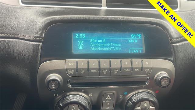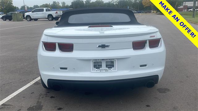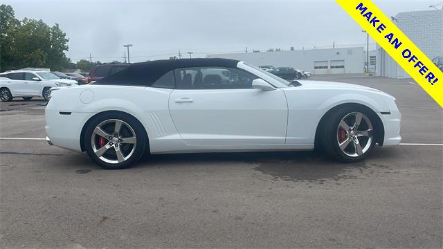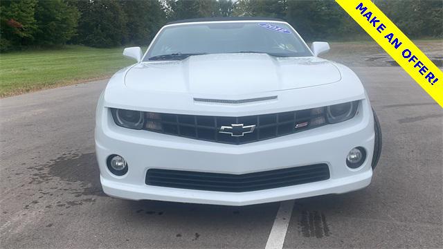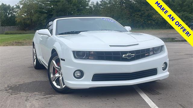 2012 Chevrolet Camaro SS 2SS GOOD TIRES LEATHER GOOD BRAKES RECENT TRADE IN Camaro SS 2SS 2D Convertible 6.2L V8 SFI 6-Speed Automatic with TapShift RWD Summit White Black w/Leather Appointed Seating Surfaces 2 Front Cup Holders 3-Spoke Leather-Wrapped Steering Wheel 4-Wheel Antilock 4-Wheel Disc Brakes Analog Instrumentation Auxiliary Multi-Function Gauges Bluetooth For Phone Boston Acoustics Premium 8-Speaker System Carpeted Front Floor Mats Electric Rear-Window Defogger Electronic Cruise Control Head-Up Display Heated Driver & Front Passenger Seats High-Intensity Discharge Headlamps LATCH System Leather Seat Trim Leather-Wrapped Shift Knob Maintenance-Free Battery Manual Rake & Telescopic Steering Column OnStar 6 Months Directions & Connections Plan Power Programmable Door Locks Preferred Equipment Group 2SS Remote Keyless Entry RS Package SIRIUSXM Satellite Radio StabiliTrak Stainless-Steel Dual-Outlet Exhaust Steering Wheel Mounted Audio Controls Tonneau Cover Ultrasonic Rear Park Assist Universal Home Remote USB Port Audio System Feature Wireless PDIM 4-Wheel Disc Brakes 9 Speakers ABS brakes Air Conditioning Alloy wheels AM/FM radio: SiriusXM Auto-dimming door mirrors Auto-dimming Rear-View mirror Brake assist Bumpers: body-color CD player Compass Convertible roof lining Delay-off headlights Driver door bin Driver vanity mirror Dual front impact airbags Dual front side impact airbags Electronic Stability Control Emergency communication system: OnStar Directions & Connections Exterior Parking Camera Rear Four wheel independent suspension Front anti-roll bar Front Bucket Seats Front Center Armrest Front fog lights Front reading lights Front Sport Bucket Seats Fully automatic headlights Garage door transmitter Glass rear window Heads-Up Display Heated door mirrors Heated front seats Illuminated entry Leather Seating Surfaces Leather Shift Knob Low tire pressure warning Occupant sensing airbag Outside temperature display Panic alarm Passenger door bin Passenger vanity mirror Power convertible roof Power door mirrors Power driver seat Power passenger seat Power steering Power windows Radio data system Radio: AM/FM Stereo w/CD-ROM/MP3 Playback Rear anti-roll bar Rear window defroster Remote keyless entry Security system Speed control Speed-sensing steering Spoiler Steering wheel mounted audio controls Tachometer Telescoping steering wheel Tilt steering wheel Traction control Trip computer Variably intermittent wipers Voltmeter Camaro SS 2SS 2D Convertible 6.2L V8 SFI 6-Speed Automatic with TapShift RWD Summit White Black w/Leather Appointed Seating Surfaces 2 Front Cup Holders 3-Spoke Leather-Wrapped Steering Wheel 4-Wheel Antilock 4-Wheel Disc Brakes Analog Instrumentation Auxiliary Multi-Function Gauges Bluetooth For Phone Boston Acoustics Premium 8-Speaker System Carpeted Front Floor Mats Electric Rear-Window Defogger Electronic Cruise Control Head-Up Display Heated Driver & Front Passenger Seats High-Intensity Discharge Headlamps LATCH System Leather Seat Trim Leather-Wrapped Shift Knob Maintenance-Free Battery Manual Rake & Telescopic Steering Column OnStar 6 Months Directions & Connections Plan Power Programmable Door Locks Preferred Equipment Group 2SS Remote Keyless Entry RS Package SIRIUSXM Satellite Radio StabiliTrak Stainless-Steel Dual-Outlet Exhaust Steering Wheel Mounted Audio Controls Tonneau Cover Ultrasonic Rear Park Assist Universal Home Remote USB Port Audio System Feature Wireless PDIM.Priced below KBB Fair Purchase Price! Clean CARFAX. ""JOE KNOWS USED CARS!"" * CPO APR WELL QUALIFIED BUYERS.