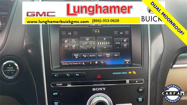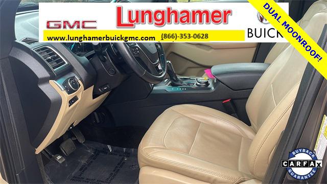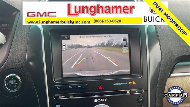 2016 Ford Explorer Limited SERVICE RECORD AVAILABLE GOOD TIRES REAR BACK UP CAMERA LEATHER GOOD BRAKES RECENT TRADE IN Explorer Limited 4D Sport Utility 3.5L 6-Cylinder SMPI DOHC 6-Speed Automatic with Select-Shift 4WD Caribou Metallic Medium Soft Ceramic w/Nirvana Multi Contour Leather Cooled Bucket Seats 12 Speakers 20"" Premium Painted Aluminum Wheels 3.65 Axle Ratio 3rd row seats: split-bench Air Conditioning Alloy wheels AM/FM radio: SiriusXM Auto High Beam Headlights Automatic temperature control BLIS Plus Inflatable Rear Safety Belts Package Brake assist Bumpers: body-color CD player Delay-off headlights Electronic Stability Control Enhanced Active Park Assist w/Parallel Parking Equipment Group 301A Exterior Parking Camera Rear Four wheel independent suspension Front Bucket Seats Front Center Armrest Front dual zone A/C Front fog lights Fully automatic headlights Heated door mirrors Heated front seats Heated rear seats Lane Keeping System Memory seat Multi-Contour Front Seats Navigation System Panic alarm Passenger door bin Pedal memory Power door mirrors Power driver seat Power Liftgate Power passenger seat Power steering Power windows Premium audio system: Sony Radio data system Radio: Sony Audio System w/Single-CD/MP3-Capable Rain Sensing Wipers Rear air conditioning Rear window defroster Rear window wiper Remote keyless entry Roof rack: rails only Security system Speed control Speed-sensing steering Speed-Sensitive Wipers Split folding rear seat Spoiler Steering wheel memory Steering wheel mounted audio controls SYNC w/MyFord Touch Traction control Turn signal indicator mirrors Twin Panel Moonroof Variably intermittent wipers Ventilated front seats 4-Wheel Disc Brakes ABS brakes Adjustable pedals Auto tilt-away steering wheel Auto-dimming Rear-View mirror Compass Driver door bin Driver vanity mirror Dual front impact airbags Dual front side impact airbags Emergency communication system: 911 Assist Front anti-roll bar Front reading lights Garage door transmitter Heated steering wheel Illuminated entry Knee airbag Leather steering wheel Low tire pressure warning Occupant sensing airbag Outside temperature display Overhead airbag Overhead console Passenger vanity mirror Perf Leather-Trimmed Heated/Cooled Bucket Seats Rear anti-roll bar Rear reading lights Rear seat center armrest Tachometer Telescoping steering wheel Tilt steering wheel Trip computer Explorer Limited 4D Sport Utility 3.5L 6-Cylinder SMPI DOHC 6-Speed Automatic with Select-Shift 4WD Caribou Metallic Medium Soft Ceramic w/Nirvana Multi Contour Leather Cooled Bucket Seats 12 Speakers 20"" Premium Painted Aluminum Wheels 3.65 Axle Ratio 3rd row seats: split-bench Air Conditioning Alloy wheels AM/FM radio: SiriusXM Auto High Beam Headlights Automatic temperature control BLIS Plus Inflatable Rear Safety Belts Package Brake assist Bumpers: body-color CD player Delay-off headlights Electronic Stability Control Enhanced Active Park Assist w/Parallel Parking Equipment Group 301A Exterior Parking Camera Rear Four wheel independent suspension Front Bucket Seats Front Center Armrest Front dual zone A/C Front fog lights Fully automatic headlights Heated door mirrors Heated front seats Heated rear seats Lane Keeping System Memory seat Multi-Contour Front Seats Navigation System Panic alarm Passenger door bin Pedal memory Power door mirrors Power driver seat Power Liftgate Power passenger seat Power steering Power windows Premium audio system: Sony Radio data system Radio: Sony Audio System w/Single-CD/MP3-Capable Rain Sensing Wipers Rear air conditioning Rear window defroster Rear window wiper Remote keyless entry Roof rack: rails only Security system Speed control Speed-sensing steering Speed-Sensitive Wipers Split folding rear seat Spoiler Steering wheel memory Steering wheel mounted audio controls