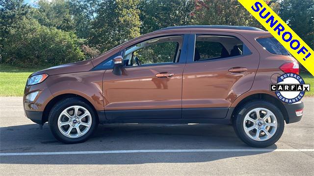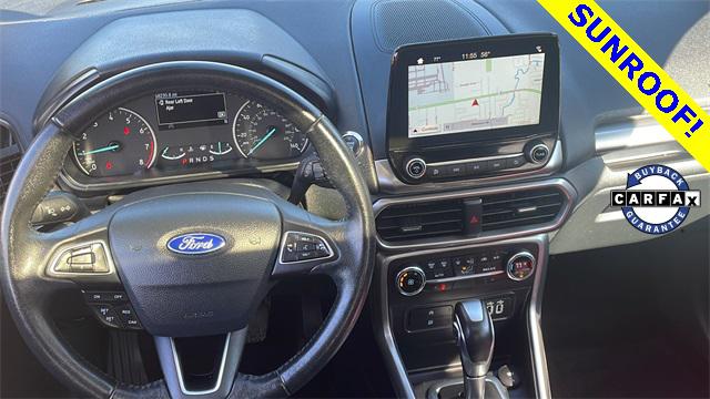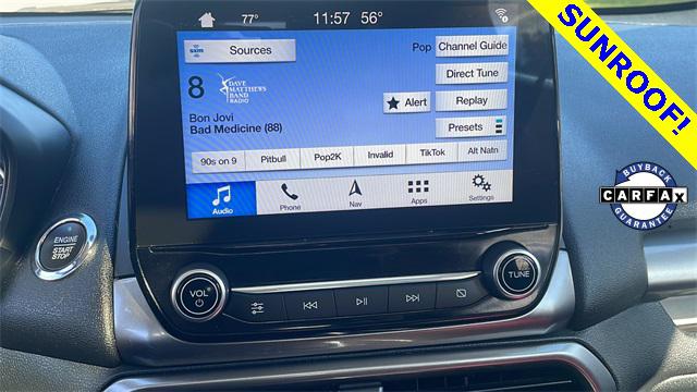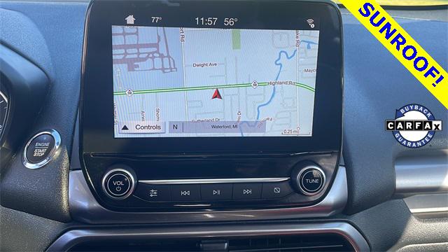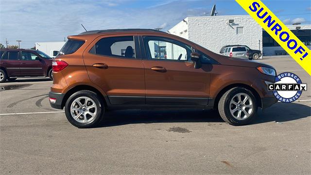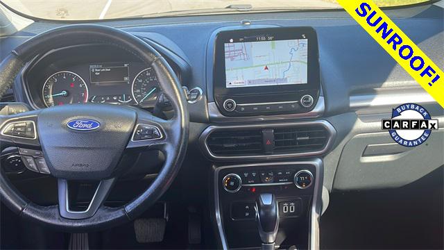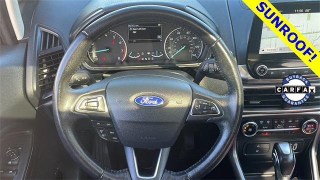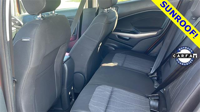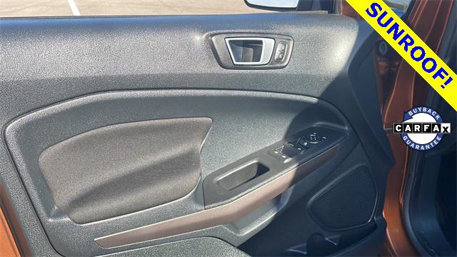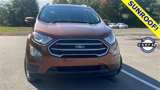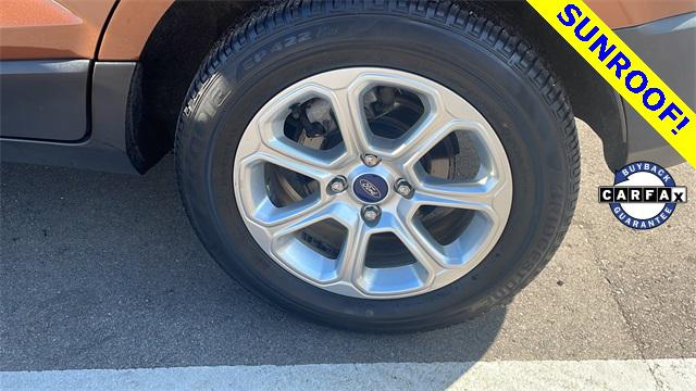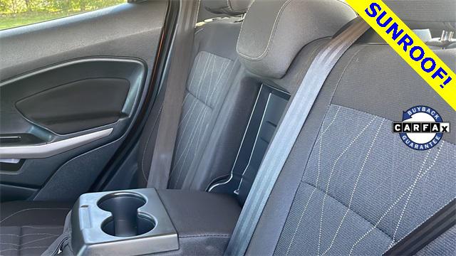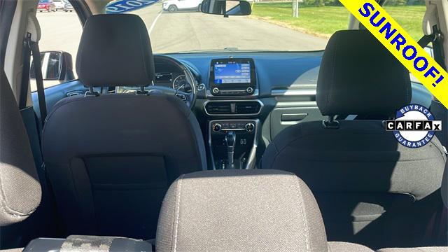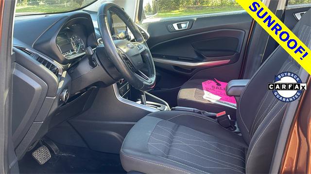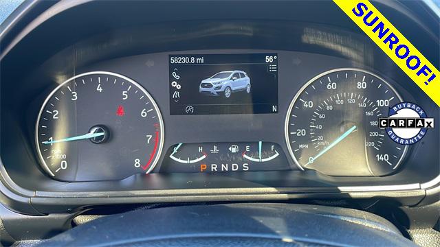 2019 Ford EcoSport SE REMAINDER OF FACTORY WARRANTY GOOD BRAKES RECENT TRADE IN EcoSport SE 4D Sport Utility EcoBoost 1.0L I3 GTDi DOHC Turbocharged VCT 6-Speed Automatic FWD Canyon Ridge Metallic Ebony Black Cloth 4-Wheel Disc Brakes 6 Speakers ABS brakes Alloy wheels AM/FM radio: SiriusXM Brake assist Bumpers: body-color Cargo Mat Delay-off headlights Dual front impact airbags Dual front side impact airbags Electronic Stability Control Emergency communication system: SYNC 3 911 Assist Equipment Group 200A Exterior Parking Camera Rear Front & Rear Floor Liners Front anti-roll bar Front Bucket Seats Front Center Armrest Front fog lights Front wheel independent suspension Fully automatic headlights Heated front seats Interior Protection Package Knee airbag Low tire pressure warning Occupant sensing airbag Overhead airbag Panic alarm Passenger door bin Power door mirrors Power driver seat Power steering Power windows Radio data system Radio: AM/FM Stereo w/MP3 Capable Rear Parking Sensors Rear side impact airbag Remote keyless entry Roof rack: rails only SiriusXM Radio Speed control Speed-sensing steering Split folding rear seat Steering wheel mounted audio controls SYNC 3 Communications & Entertainment System Tire Inflator & Sealant Kit Traction control Turn signal indicator mirrors Wheels: 16"" Shadow Silver-Painted Aluminum 3.44 Axle Ratio Air Conditioning AppLink/Apple CarPlay and Android Auto Automatic temperature control Compass Driver door bin Driver vanity mirror Front reading lights Illuminated entry Leather Shift Knob Leather steering wheel Outside temperature display Overhead console Passenger vanity mirror Power moonroof Rear seat center armrest Rear window defroster Rear window wiper Tachometer Telescoping steering wheel Tilt steering wheel Trip computer Unique Cloth Heated Front Bucket Seats Variably intermittent wipers EcoSport SE 4D Sport Utility EcoBoost 1.0L I3 GTDi DOHC Turbocharged VCT 6-Speed Automatic FWD Canyon Ridge Metallic Ebony Black Cloth 4-Wheel Disc Brakes 6 Speakers ABS brakes Alloy wheels AM/FM radio: SiriusXM Brake assist Bumpers: body-color Cargo Mat Delay-off headlights Dual front impact airbags Dual front side impact airbags Electronic Stability Control Emergency communication system: SYNC 3 911 Assist Equipment Group 200A Exterior Parking Camera Rear Front & Rear Floor Liners Front anti-roll bar Front Bucket Seats Front Center Armrest Front fog lights Front wheel independent suspension Fully automatic headlights Heated front seats Interior Protection Package Knee airbag Low tire pressure warning Occupant sensing airbag Overhead airbag Panic alarm Passenger door bin Power door mirrors Power driver seat Power steering Power windows Radio data system Radio: AM/FM Stereo w/MP3 Capable Rear Parking Sensors Rear side impact airbag Remote keyless entry Roof rack: rails only SiriusXM Radio Speed control Speed-sensing steering Split folding rear seat Steering wheel mounted audio controls SYNC 3 Communications & Entertainment System Tire Inflator & Sealant Kit Traction control Turn signal indicator mirrors Wheels: 16"" Shadow Silver-Painted Aluminum.Clean CARFAX. ""JOE KNOWS USED CARS!"" * CPO APR WELL QUALIFIED BUYERS. 27/29 City/Highway MPG