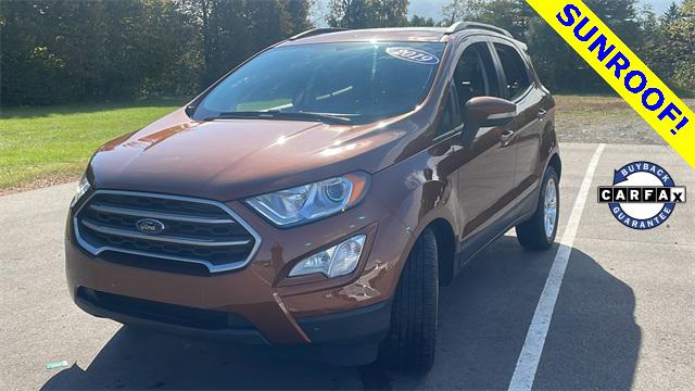 2019 Ford EcoSport SE REMAINDER OF FACTORY WARRANTY GOOD BRAKES RECENT TRADE IN EcoSport SE 4D Sport Utility EcoBoost 1.0L I3 GTDi DOHC Turbocharged VCT 6-Speed Automatic FWD Canyon Ridge Metallic Ebony Black Cloth 4-Wheel Disc Brakes 6 Speakers ABS brakes Alloy wheels AM/FM radio: SiriusXM Brake assist Bumpers: body-color Cargo Mat Delay-off headlights Dual front impact airbags Dual front side impact airbags Electronic Stability Control Emergency communication system: SYNC...
