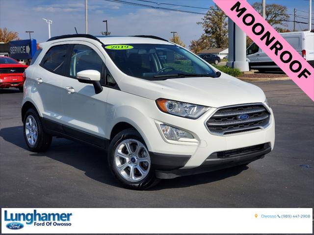 2019 Ford EcoSport SE GOOD TIRES REAR BACK UP CAMERA GOOD BRAKES RECENT TRADE IN EcoSport SE 4D Sport Utility 2.0L I4 Ti-VCT GDI 6-Speed Automatic 4WD Shadow Black Ebony Black w/Unique Cloth Heated Front Bucket Seats 110V/150W AC Power Outlet 7 Speakers Air Conditioning Alloy wheels AM/FM radio: SiriusXM Ambient Lighting Automatic temperature control BLIS Blind Spot Information System Brake assist Delay-off headlights Electronic Stability Control Equipment Group 200A Exterior Parking Camera Rear FordPass Connect Front Bucket Seats Front Center Armrest Front fog lights Fully automatic headlights Heated front seats Panic alarm Passenger door bin Power moonroof Radio data system Radio: AM/FM Stereo w/MP3 Capable Rear Parking Sensors Rear window defroster Rear window wiper SE Convenience Package SiriusXM Radio Speed control Speed-sensing steering Split folding rear seat SYNC 3 Communications & Entertainment System SYNC 3 Communications & Entertainment System w/47B Tire Inflator & Sealant Kit Traction control Variably intermittent wipers Wheels: 16"" Shadow Silver-Painted Aluminum 3.51 Axle Ratio 4-Wheel Disc Brakes 6 Speakers ABS brakes AppLink/Apple CarPlay and Android Auto Bumpers: body-color Compass Driver door bin Driver vanity mirror Dual front impact airbags Dual front side impact airbags Emergency communication system: SYNC 3 911 Assist Front anti-roll bar Front reading lights Front wheel independent suspension Illuminated entry Knee airbag Leather Shift Knob Leather steering wheel Low tire pressure warning Occupant sensing airbag Outside temperature display Overhead airbag Overhead console Passenger vanity mirror Power door mirrors Power driver seat Power steering Power windows Rear anti-roll bar Rear seat center armrest Rear side impact airbag Remote keyless entry Roof rack: rails only SiriusXM Traffic & Travel Link Steering wheel mounted audio controls Tachometer Telescoping steering wheel Tilt steering wheel Trip computer Turn signal indicator mirrors Unique Cloth Heated Front Bucket Seats EcoSport SE 4D Sport Utility 2.0L I4 Ti-VCT GDI 6-Speed Automatic 4WD Shadow Black Ebony Black w/Unique Cloth Heated Front Bucket Seats 110V/150W AC Power Outlet 7 Speakers Air Conditioning Alloy wheels AM/FM radio: SiriusXM Ambient Lighting Automatic temperature control BLIS Blind Spot Information System Brake assist Delay-off headlights Electronic Stability Control Equipment Group 200A Exterior Parking Camera Rear FordPass Connect Front Bucket Seats Front Center Armrest Front fog lights Fully automatic headlights Heated front seats Panic alarm Passenger door bin Power moonroof Radio data system Radio: AM/FM Stereo w/MP3 Capable Rear Parking Sensors Rear window defroster Rear window wiper SE Convenience Package SiriusXM Radio Speed control Speed-sensing steering Split folding rear seat SYNC 3 Communications & Entertainment System SYNC 3 Communications & Entertainment System w/47B Tire Inflator & Sealant Kit Traction control Variably intermittent wipers Wheels: 16"" Shadow Silver-Painted Aluminum.Recent Arrival! ""JOE KNOWS USED CARS!"" * CPO APR WELL QUALIFIED BUYERS. 23/29 City/Highway MPG